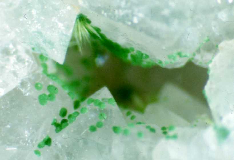 Etwas glasig wirkende Bayldonitkügelchen. Sammlung: Geider; Foto: Schrenk |