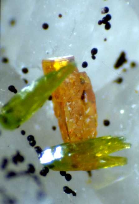 Orangene Wulfenit/Stolzit-Kristalle; untersucht von Walenta; Fund: 1989 Siehe dazu gesonderte Berichte von Blaß/Graf und auf RBmineral-HP